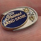 Vintage 10k Gold Federal Land Bank Logo Enamel Lapel Pin Blue Oval Gemstones