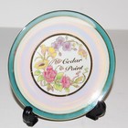 Vintage Cedar Point Souvenir 5.25" Iridescent Lusterware Plate Teal + Pink Rose
