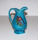 Vintage Cedar Point Colorful Aqua Ceramic Pottery Pitcher 1970's Souvenir