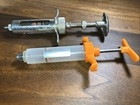 Lot Of 2 Vintage Veterinary Medicine Syringes Metal Glass Plastic 20 Cc