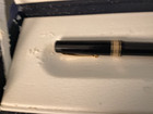 Omas Fountain Pen Milord Black & Gold Fountain Pen 18kt Gold Fine Pt In Box *