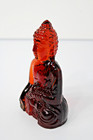 Art Glass Buddha Bodhisattva Figure, 5.5h Amber Red Amberina, Dynasty Gallery
