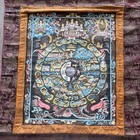 Large Wheel Of Life Thangka Painting In Fabric Frame. Hand Painted.