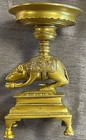 Heavy 6.5” Brass Puja Lamp Candle Holder, Hindu Deity Ganesha Rat, Made In India