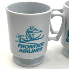 Vintage Frontier Airlines Teal Blue & White Plastic Coffee Cup Mug Snow Club Ski