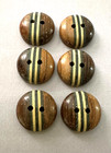 Set Of 6 Vintage All Wood Buttons With Center Stripe Design
