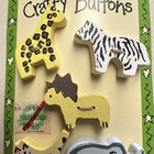 Vtg Crafty Buttons Set Of 5 Wood Jungle Animals Pastels Original Card