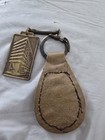 Thick Round Medal Arizona Roadrunner Keychain Turquoise & Gold Tone & Leather