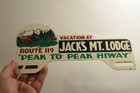 Jack's Mountain Lodge Arizona Route 119 Painted Metal Topper Sign Car 1950s