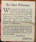 1918 Jacksonville Florida Osky's Receipt For 2 Live Alligators