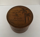 Vintage Aloha Honolulu Koa Wood 6 Coaster Box Set Hawaiian Palm Trees Sailboat