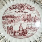 1960s Vintage Maryland State Souvenir Plate 10” Gold Scrolls Red Graphics Ribbed