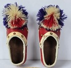 Antique Vintage Greek Folk Dance Child's 6" Red Leather Shoes ~ With Pom Poms~!