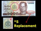 Thailand Banknote 1999 1000 Baht 6th Cycle 72nd King Rama 9 P#104 9s Replacement