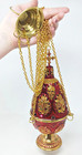 High Polished Brass Ornate Floral Red Enameled Incense Burner Censer 12.4 In