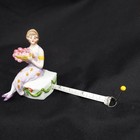 Rare Antique Porcelain Figural Woman Sewing Tape Measure, 1920's Germany