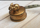 Brass Bunny Rabbit Measuring Tape Antique 1800's Original Wind-up Sewing Gift
