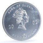 Zambia 5000 Kwacha Elephant Colorized Km-142 Wildlife Bullion Silver Coin 2002
