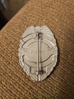 Vintage Police Fire Hat Badge Independence Liberty Virtue Silver Tone #111
