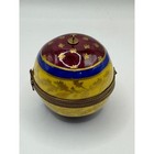Limoges France Peint Main Egg Trinket Box Ornament Reindeer Floral Decor