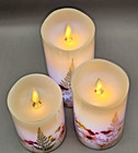 Flameless Flickering Style Candles W/ Flowers 6", 4.5" & 3.5" Tall Set Of 3