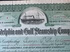 1909 Philadelphia & Gulf Steamship Company Stock Certificate Low Serial #4