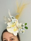 Hat Fascinator White Headband 3 Birds On Long Branches With Pink Orange Flowers