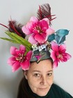 Hat Fascinator Pink Purple White Flowers Sparkly Headband Ooak Derby Any Event