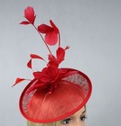 Stunning Red Sinamay Fascinator With Matching Feathers On Headband Spring Racing