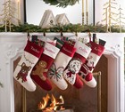 Holiday Icons Crewel Embroidered Stocking Luxury Winter Holiday Decor New