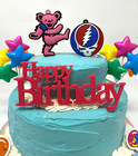 Grateful Dead Birthday Cake Topper Set ~ Brand New ~ Pink Dancing Bear