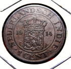 1914 Netherlands East Indies One Cent Copper Coin