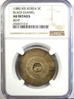 1882 Korea 3 Chon Black Enamel Coin 3c - Certified Ngc Au Details - Rare!