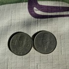 Korea 2 Mun Seed Coins , Unc Dark Brassy Toned, Still Attached As Portion.