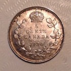 1920 Canada George V Five 5 Cents Au Almost Uncirculated Cd -