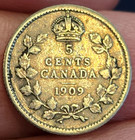 1909 Canada Edward Vii , 5 Cents Pointed Leaves Variety - Sterling Silver Coin