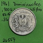 1961 Dominican Republic 🇩🇴 .900 Silver Half Peso .3617 Oz Asw Nice Coin