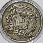 1897 Dominican Republic 1/2 Peso F/vf Rare Silver Coin. Km#15 Low Mintage 916k