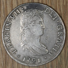 Mexico War Of Independence 8 Reales Ferdinand Vii 1821 Zs Rg Zacatecas Mint
