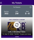 2 Great Tickets To The La Lakers Vs Brooklyn Nets On 3/27/26 Section 302