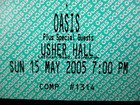 Oasis, Unused Complimentary Ticket, Usher Hall, Edinburgh, Sunday 15 May 2005