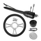 30" Tilt Black Manual Steering Column No Key & 14" Steering Wheel Kit W/ Adapter