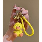 Yellow Duckling Keychain Braided Wristlet Strap Gold Bell Bag Charm Accessory