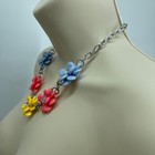 Chunky Flower Necklace Kidcore Coquette Rhinestone Charm Silver Tone Chain 6"