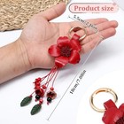 Leather Leaf Flower Tassel Keychain, Cute Keychain Tassel Bag Charm Red Flower
