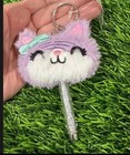 Claire’s Pom Pom Plush Purple Kitty Cat Pen Silver Glitter Key Chain 2pcs