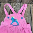 Vintage Kids Pink Corduroy Overalls Rocking Horse Applique Size 2
