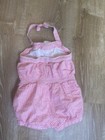 Janie And Jack Romper Girls 4t Pink White Halter Seersucker Outfit Euc