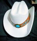 Western White Cowboy Hat Brown Floral Turquoise Centerpiece & Under Brim 1080