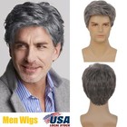Men's Grey Short Wig Heat Resistant Natural Male Cosplay Daily Hair Wigs Gift Us